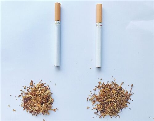 真 假 烟支烟丝差异对比:真烟过滤嘴呈土黄色,烟丝呈亮黄色,切丝均匀;假烟过滤嘴颜色较真烟浅,烟丝颜色偏暗,且切丝较细,碎末多。