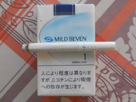 柔和七星日免1毫克,这个可以叫空气烟,还不如最淡的细支烟来劲儿
