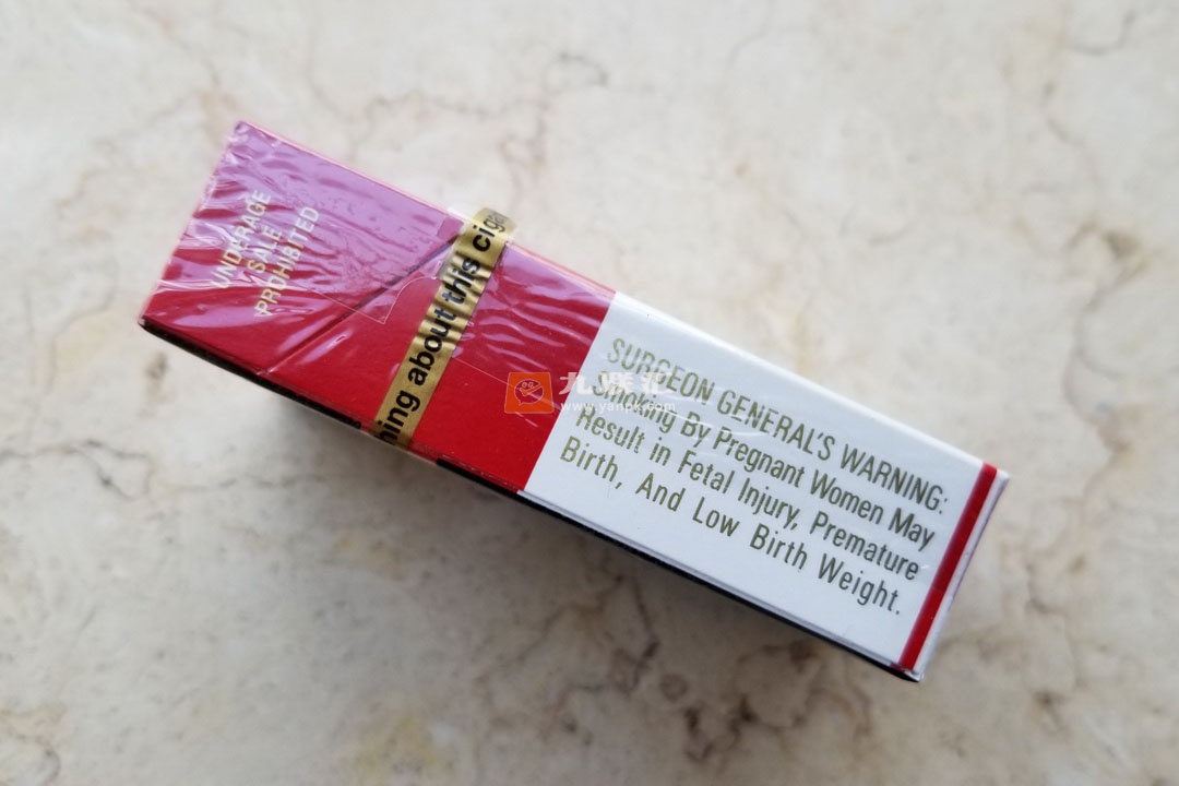 经典的红顶万宝路硬盒设计,这种品牌印记早就深入人心,很难抹去了....看着舒服!土金色配着黑色字迹的拉带,不用多说,这是美版的印记。背面,很有特色!黑色的记背景,斑驳陆离,现出水泥的质感...冷硬中,显现出工业环境下那种千篇一律的机械压抑感。一抹鲜红的涂鸦,里面的文字很有意思——On the clock. Off the grid——到点了,拉闸!下班欢庆劳动节去了。前段时间大烟袋在晒一款爱达荷州完税白金纪念版,也是背面有很炫的图案。这两款的共同点,图案都是印在烟盒背面的塑料膜上的。中间那个红色外环,中间带小红顶的标记很有特色,中间的文字极具蛊惑性——Full-Time. Adventure!