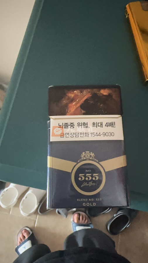 韩免金555,开盒是经典韩式忠告图,内衬纸及某些字样与内销版稍有不同,和国内一样的555(金)味,这款烟也继承了韩烟轻口的传统,同为11焦,明显比内销的淡些,但甜口多些,作为“老万”,这款555金 抽下来相当喜欢,因为口味减淡了,也很适合岁数大了,或在控制摄烟量的烟友。