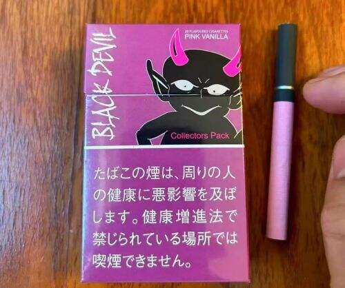这个是日本粉魔鬼(Black Devil 限定款),属于黑魔鬼系列的限定配色款,是黑魔鬼(Black Devil)的限定粉黑配色款(常规黑魔鬼是全黑包装),主打“香草+烟草”的甜香调,属于日系外烟里的“网红款”,焦油量约8mg(属于中等焦油)。黑粉撞色包装+卡通恶魔剪影,烟支是“黑粉渐变+银环”设计,外观很出片,符合潮流烟民的审美。自带浓郁的香草甜香(类似“香草冰淇淋+烤烟草”的混合味),烟气偏柔,甜而不腻,适合喜欢甜口、不喜欢呛喉烟味的用户。