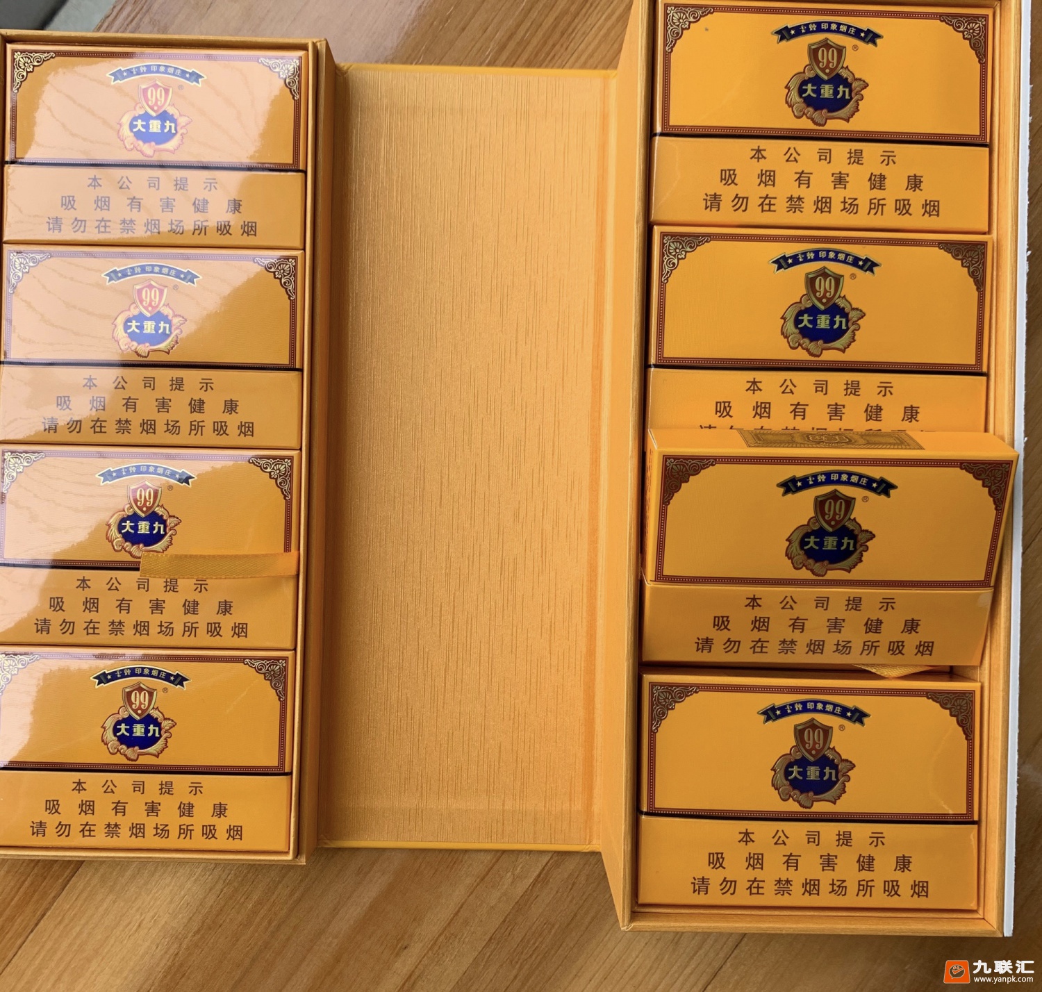 这款号称烟王的大重九9十1是少不了它的外观分析的。“大重九”商标的金黄底色,象征九月是黄金般的季节以菊花花瓣为花边,是说九月菊花盛开,底部是大重九汉字以及诞生年代1922年,金色的内衬纸上印有大重九LOGO和大重九汉字,非常漂亮。