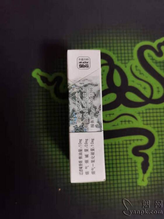 先看看包装有种山水画的感觉, 还有不知道设计师为什么这么设计 从外到内都有绿色 脑袋也是绿的 我想应该是贴合主题 打造绿色张家口城市。为冬奥会添彩 正面就是 大境门 大好河山 也借此为题打造地域特色的 “绿色香烟”和熊猫绿不一样