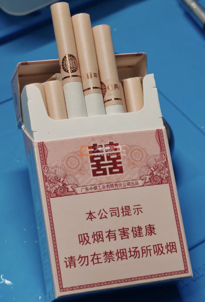 双喜百年经典老款,外包装粉色,新款外包装金色,云南昆明购买,价格20元。该烟劲道柔和,比较纯正的烟草香,没有多余的香精味,前半段过肺比较顺滑,后半段略带刺激,略微发酸,香味适中,烟气量非常饱满。总的来说在20元价位感觉中规中矩,不是我很喜欢的类型。烟盒总体都是粉色,手机拍摄有点偏黄了,烟嘴颜色比较接近玫瑰金,感觉适合结婚的时候发,这烟今天第一次见,烟店也只剩两盒了,买来尝尝鲜,其他地方应该也见不到了。在网上看老款的一氧化碳量都是12mg,买到手的这个确是13mg的。