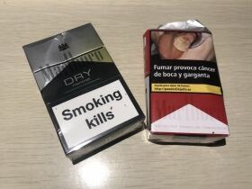 万宝路西班牙版的再欧洲1包卖到3欧元,如果走关税正规进来,所有税种加起来有80%的税,一包卖人民币要60-80元,所以就从价位来说没有竞争力,国内说是走私的全是假货,看看价位就知道了!这款万宝路一直保持多年的口味,据朋友说抽后的余味有股雪茄的香味!很可惜,没有尝试过