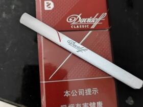 中免硬红大卫杜夫,比较常见,烟支要长一些并且雪白。10焦,一种独特的德混味道,别于万宝路或者其它混合味。还行吧。