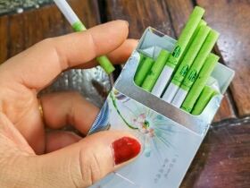 泰山出品细枝清新自然风格的包装很是讨喜(个人认为细枝都是耍流氓),这款泰山不捏破爆珠是纯正的烟丝味道,感觉没有过多的添加香料,捏破爆珠后从开始到结尾都是清新的茉莉茶味,喜欢茶香爆珠的烟友不要错过可以一试。