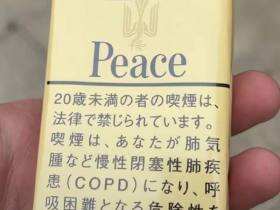 日税软Peace和平,动漫Nana同款烟,据说有一股梅子味,但是抽的时候几乎没有,焦油含量21mg,不属于雪茄烟,比较凶,抽烟抽了很多年点了,半根就头晕。