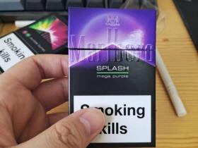 万宝路新品Mega Purple译为紫米加,源于鲁勃德的一种紫色葡萄,可想而知这是一款紫色方盒包装的葡萄爆珠,粗粗的烟嘴上一颗紫色的珠子!