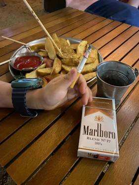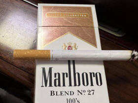 27号万宝路100S,口味淡,混味不是那么足,凑合抽吧。